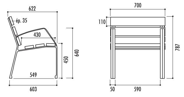 Fauteuil publique en bois et fonte - longueur : 700 mm
