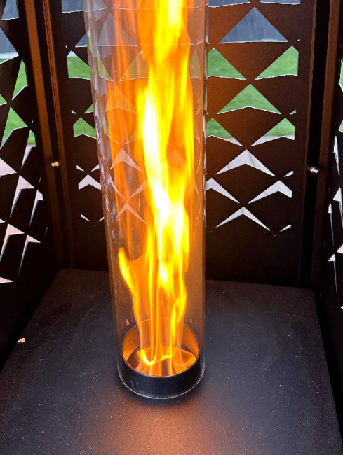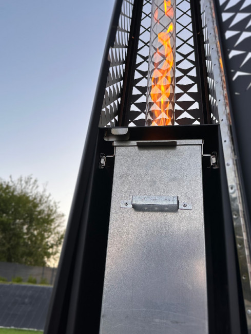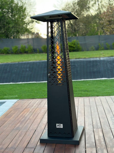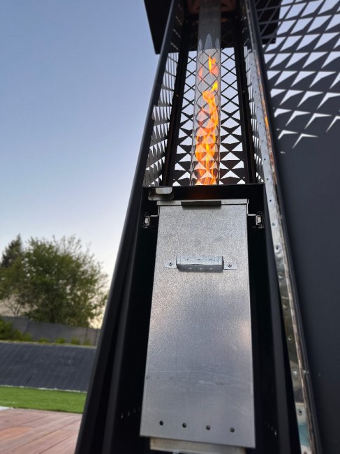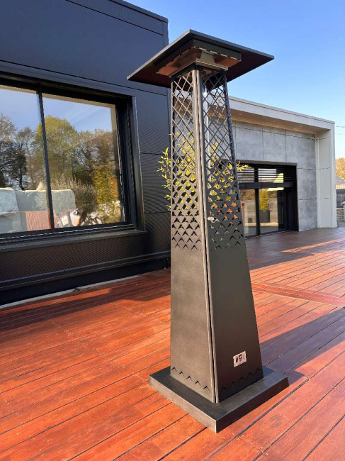 Le chauffage de terrasse aux pellets offre une chaleur confortable et douce, en plus d'une flamme torche élégante et sécuritaire.