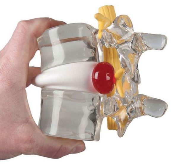 Ce modèle avec deux vertèbres lombaires permet de montrer aux patients le mécanisme lésionnel d'une hernie discale grossie 2 fois.