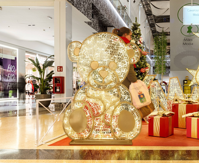 Ce nounours peut être installé dans l'entrée d'un centre commercial ou devant une mairie.