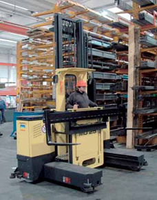 La série 2121 offre un chariot robuste et très maniable, multidirectionnel et parfaitement adapté à la préparation de commande et la manutention par une seule personne de charges de longueurs jusqu’à 12000 mm. Depuis 20 ans, des clients de secteurs d’activité différents comme le commerce du bois, fenêtre – et de profilés aluminium ... apprécient et ont éprouvé notre technique, constructeur spécialisé et leader dans les chariots latéraux électriques multidirectionnels. Le châssis oscillant en deux parties permet un contact permanent de toutes les roues avec le sol même en cas de sols inégaux.