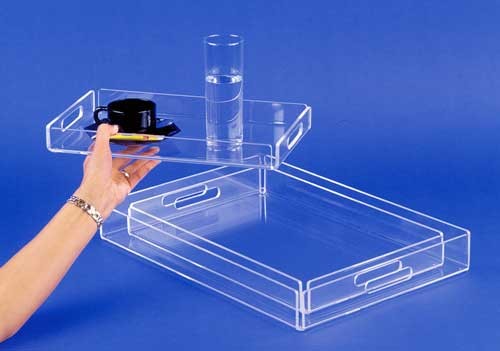 Ces plateaux sont réalisés en plexiglas coulé (le 1er choix qui ne jauni pas) de 5mm d'épaisseur.
