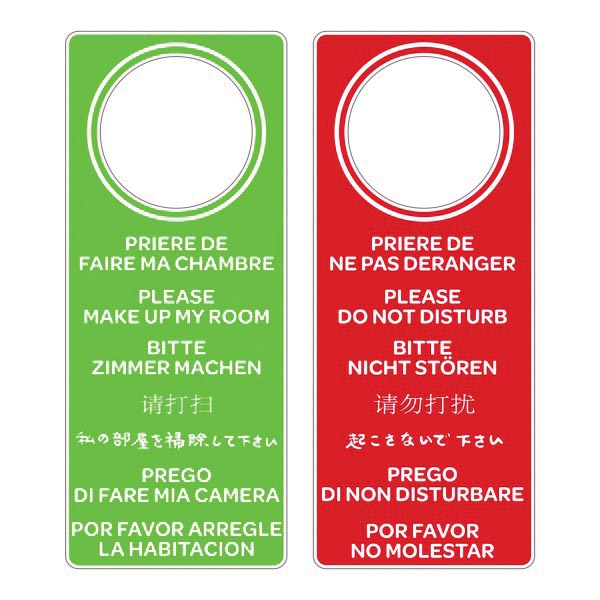 Equipez les chambres vos chambres d'hôtes avec cet accroche-porte multi-langues.