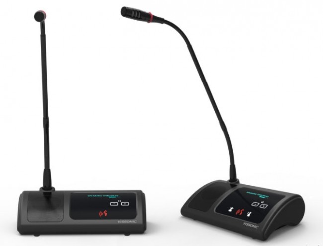 Il s'agit d'un type de micro conférence qui dispose d'un pupitre au design moderne avec touches capacitives et affichage OLED d'une excellente luminosité.