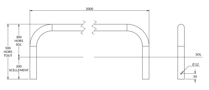 Demandes de devis pour Arceau de bordure acier Ø 60 mm - L.1000 mm ou 2000 mm - H.300 mm - A sceller ou sur platine