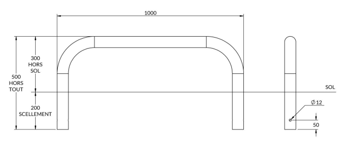 La mise en place de cet arceau de bordure à sceller s'effectue selon les règles de l'art du mobilier urbain.