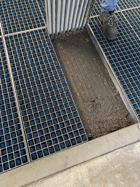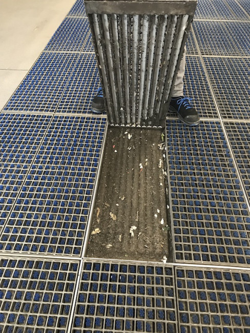 Le bac en acier inoxydable intégré collecte efficacement les débris et les saletés, ce qui simplifie grandement l'entretien et le nettoyage du tapis, pour vider le bac il suffit de retirer les caillebotis et d'utiliser un aspirateur pour retirer la saleté collecté.
