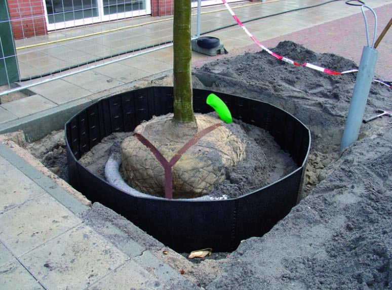 Il s'agit de panneaux en polypropylène copolymère qui permettent aux arbres de se développer en toute stabilité.