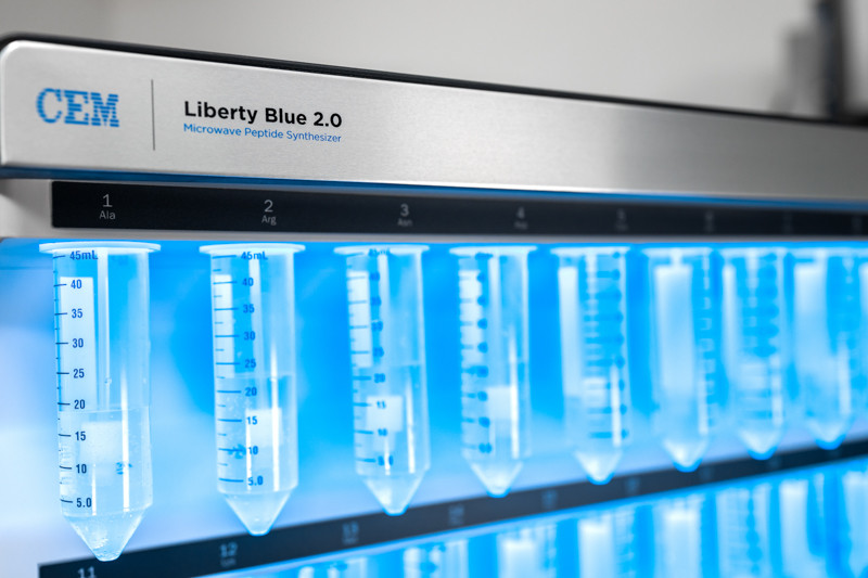 Ce synthétiseur de peptides par micro-ondes permet de synthétiser les peptides standards et complexes :