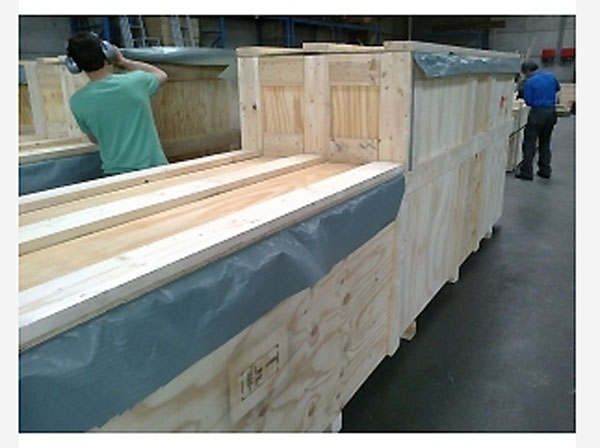 Material: Sturdy wooden construction suitable for transporting a 3000 kg industrial machine.