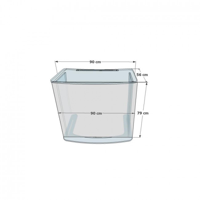 Il mesure 90 cm de largeur et 56 cm de profondeur, avec une hauteur de 79 cm.