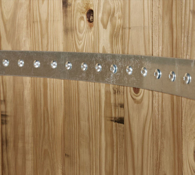 Ce vestiaire public de plage est conçu pour durer. Sa structure en acier S235 galvanisé à cœur et à chaud, réalisée en tube 35 × 35 × 2 mm, garantit une excellente tenue face à l’humidité, aux embruns et à l’air marin. Le bardage bois vertical en pin français traité classe 4 renforce cette résistance tout en conservant une esthétique naturelle, parfaitement adaptée aux plages et zones balnéaires.