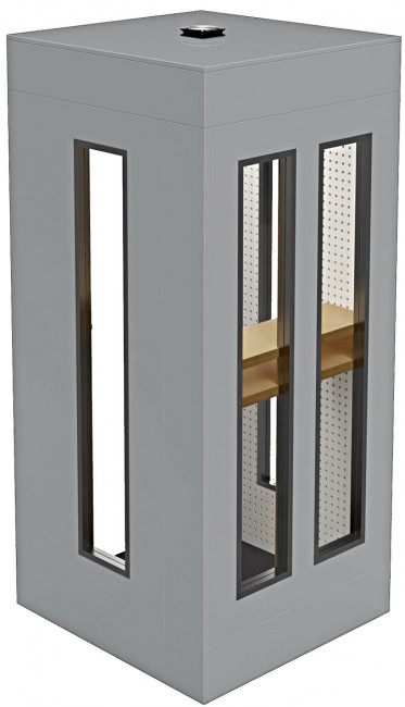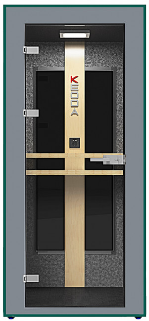 - Les parois intérieures sont tapisées de feutre acoustique gris clair ayant pour support des matériaux absorbants pour une acoustique homogène et agréable