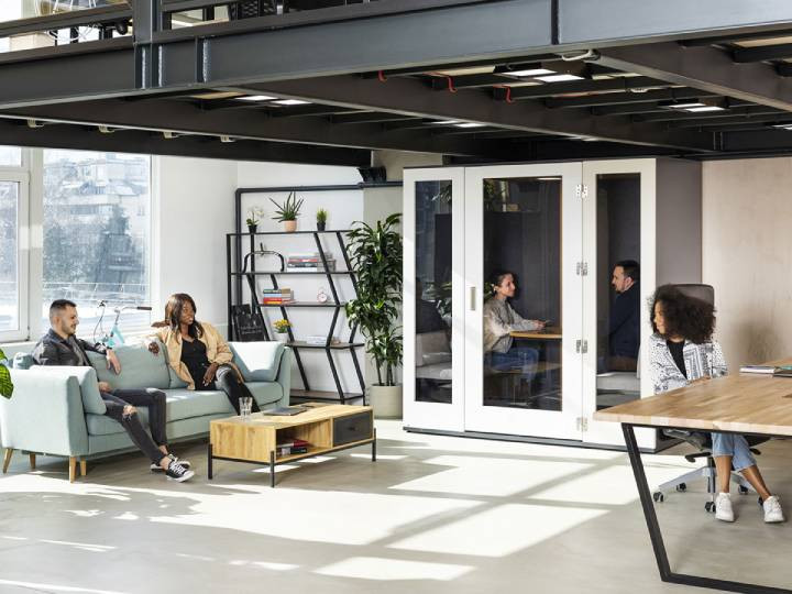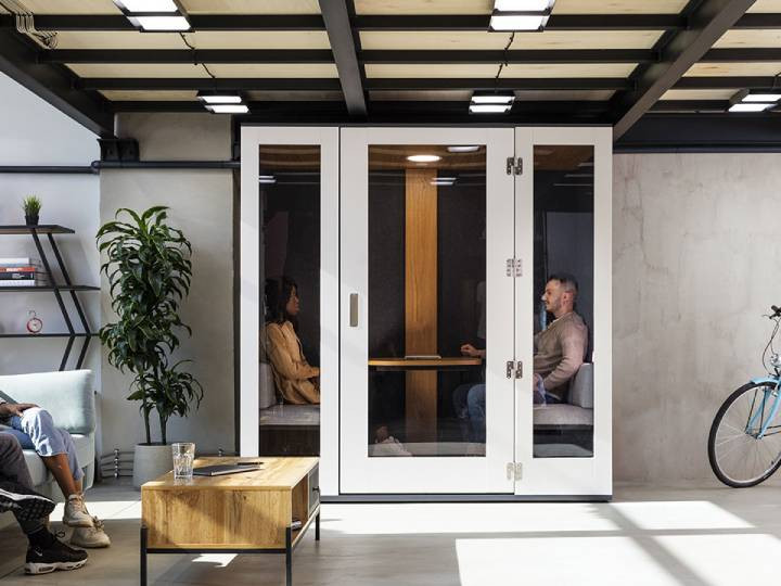 cabine de bureau éco-responsable pour 2 personnes vous permet de créer un lieu à part pour travailler, discuter ou se concentrer, sans être dérangé par le bruit ambiant.