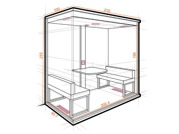 Avec notre cabine , vous créez un espace tranquille au sein de votre environnement de travail. Parfaite pour les open spaces, les bureaux partagés ou les coworkings, elle vous permet de tenir une réunion confidentielle, passer un appel ou vous concentrer à deux sans distraction extérieure. Vous vous installez confortablement sur deux banquettes garnies, autour d’une table en chêne, dans un espace fermé et insonorisé.