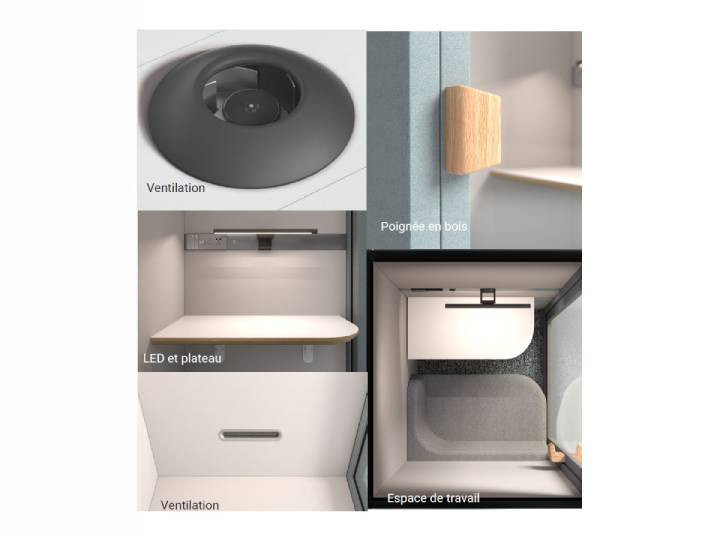 cabine acoustique mobile est conçue pour vous offrir un espace personnel calme, confortable et parfaitement équipé.