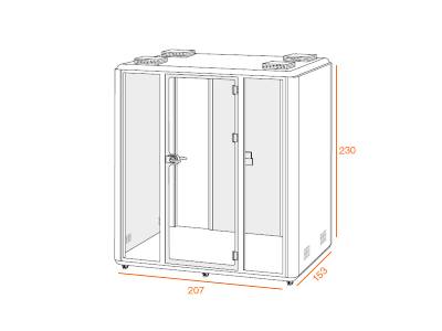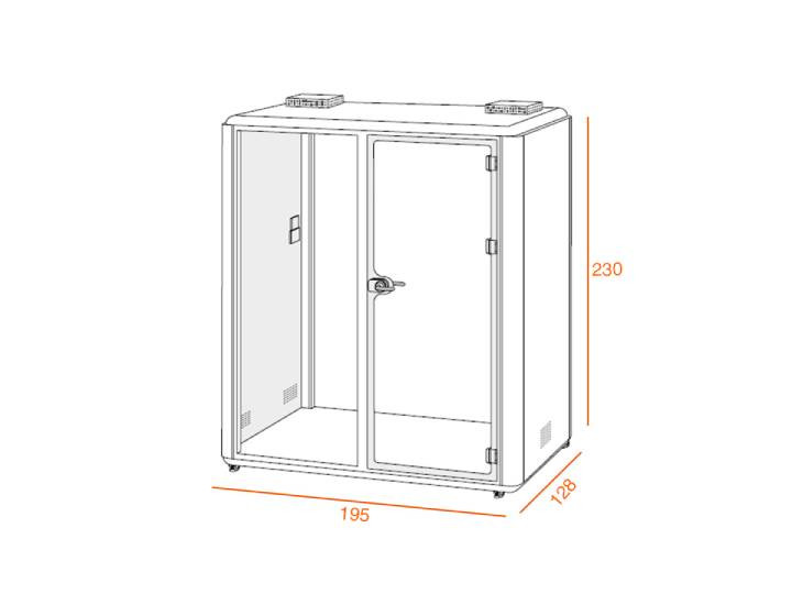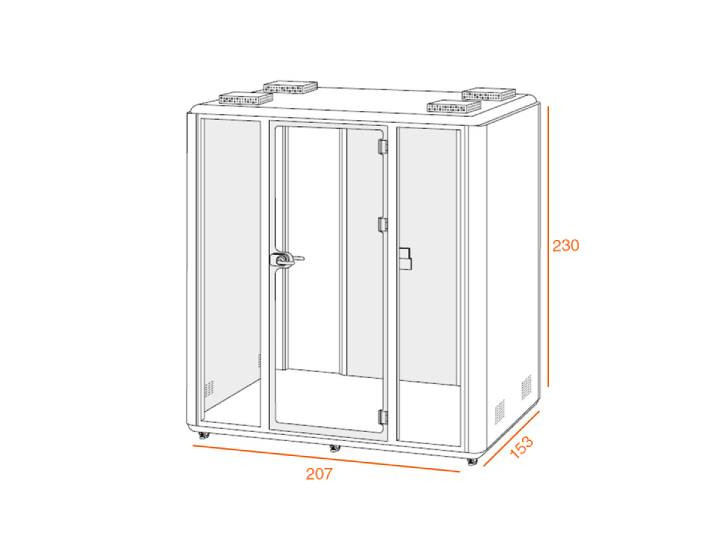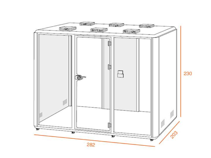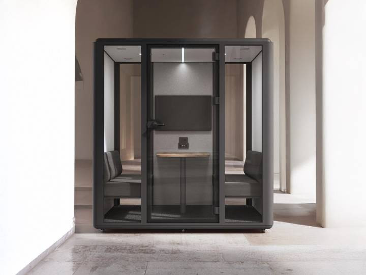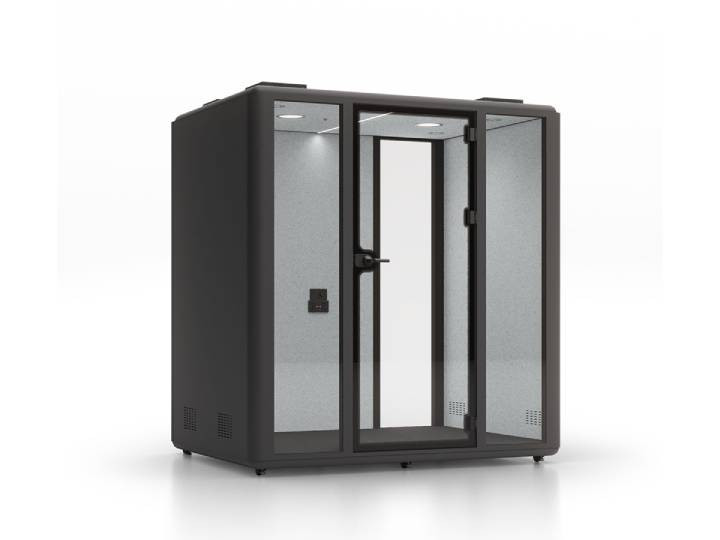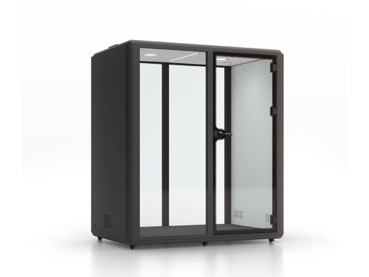 La cabine acoustique XL est la plus grande de la gamme et peut accueillir jusqu’à six personnes.