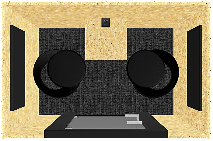 - 2 absorbeurs sur les parois + un sur le plafond pour une meilleure acoustique