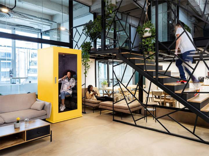 Cette cabine acoustique écologique est idéale pour téléphoner, se concentrer ou participer à des visioconférences sans nuisance sonore.