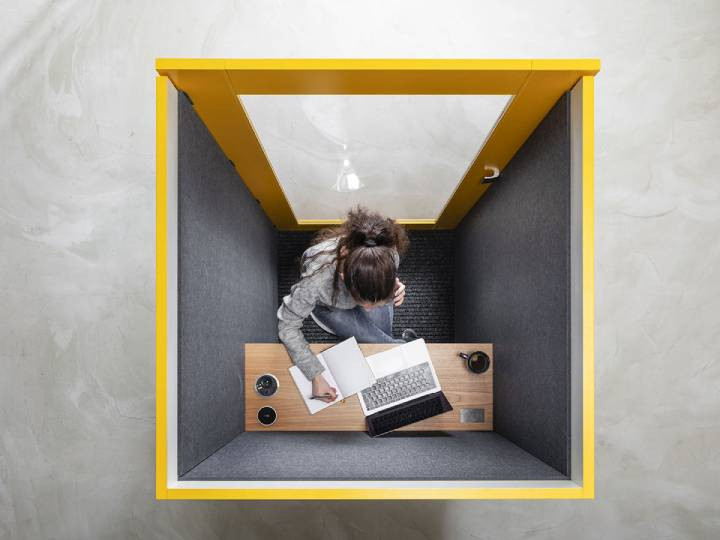 Chaque cabine contient l’équivalent de 800 bouteilles plastiques recyclées. Un vrai choix pour allier concentration et engagement écologique.