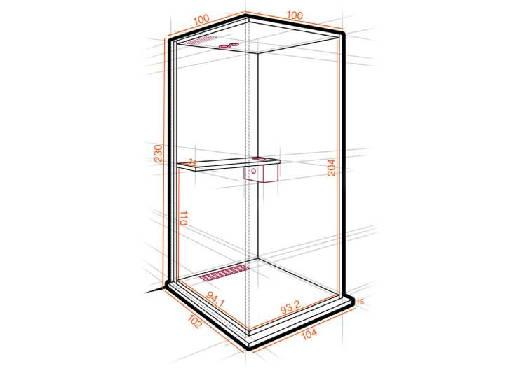 La cabine est équipée d’un éclairage LED avec détecteur de présence pour ne consommer que lorsque vous êtes à l’intérieur.