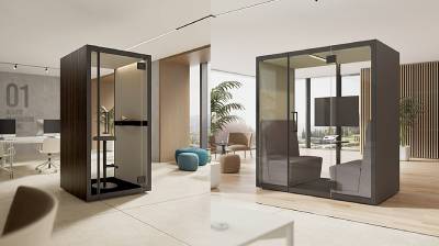 Modules avec 3 murs pleins + 1 porte vitrée, ou 2 murs pleins + 2 murs vitrés (incluant la porte) |