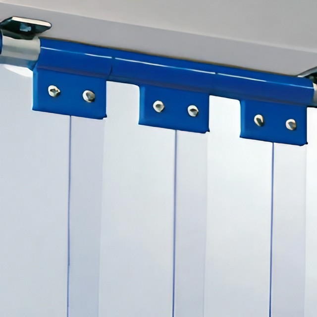 Il est compatible avec les systèmes de rideaux à lanières PVC existants, qu’ils soient fixes ou amovibles.