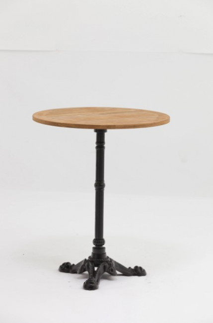Le plateau de cette table est conçue en bois de teck pour assurer sa solidité et ses pieds sont en fonte pour résister à l'usure et à l'abrasion. .