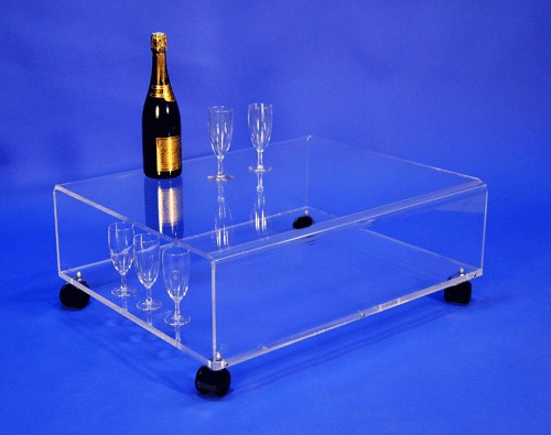 Table basse en plexiglas sur roulettes
