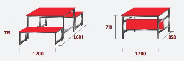 Les bancs intégrés à la structure évitent les déplacements intempestifs, garantissent une stabilité parfaite et facilitent le nettoyage des sols.