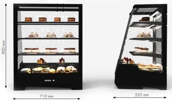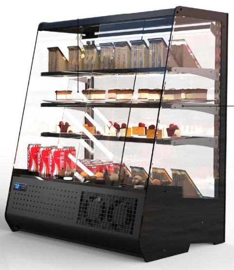 Vitrine réfrigérée versatile de grande capacité aux lignes droites, idéale pour comptoirs de bar ou dans un environnement plus sobre.
