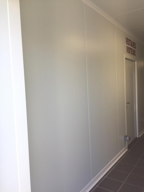 22/12/2024Revetement murale pour atelier boulanger sur panneau de fibre de bois. 21 mètre par 2.30 de haut