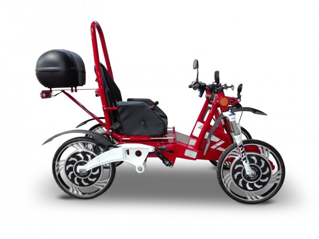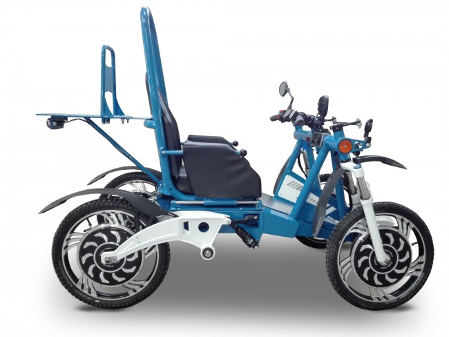 Equipé de quatre moteurs électriques et quatre batteries (possibilité cinq batteries en option). Il dispose d'une grande autonomie entre 150 et 200 km, testé avec 5 batteries sur terrain plat.