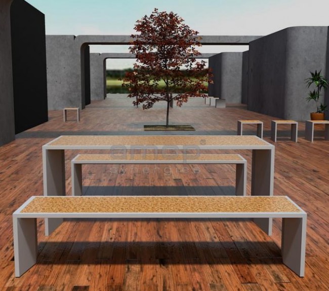 Constituée en béton UHPC, cette table urbaine se caractérise par sa rigidité et sa solidité.