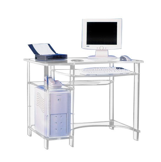 Ce bureau 100 % plexiglass est idéal pour accueillir un poste informatique complet..