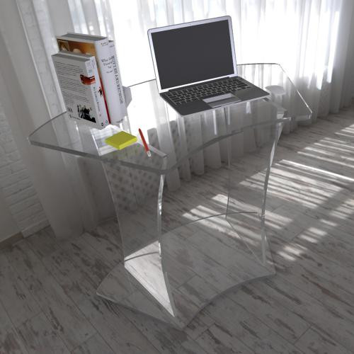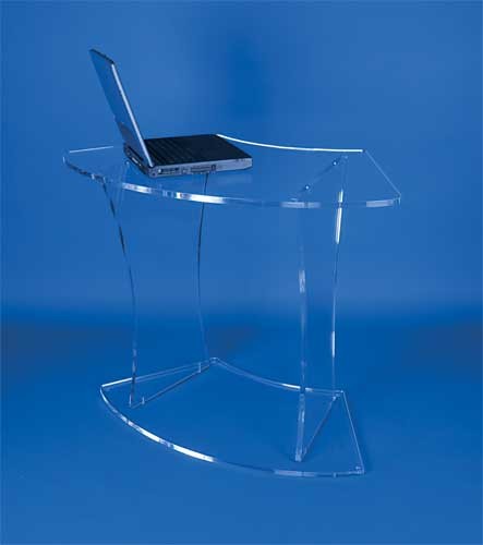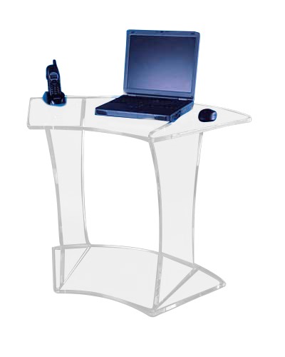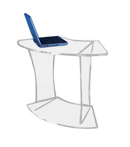 Ce petit bureau arrondi plexiglas permet de placer un ordinateur portable et autres équipements de bureaux.