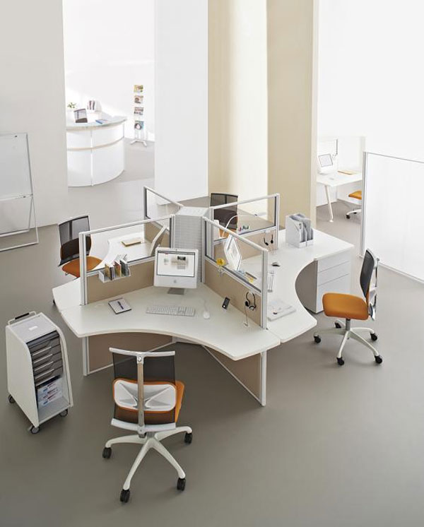 Cet ensemble de 4 postes 90° courbes dispose d’une colonne centrale pour simplifier la gestion du câblage.