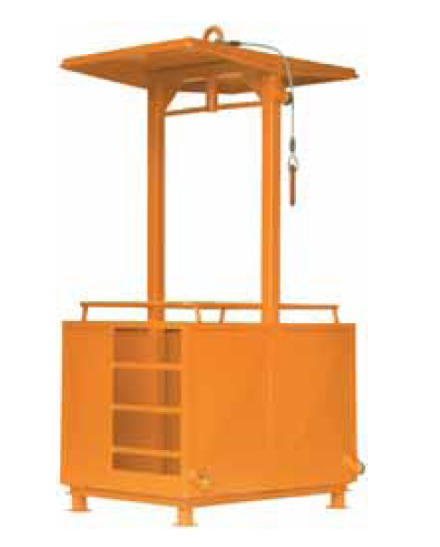 Capacité : 2 personnes + Equipements. Recouverte de tôle de tous les côtés sur 1000 mm de hauteur et de garde-corps de protection tout autour. Echelle de montée incorporée sur le côté étroit. Nacelle de travail à son extrémité supérieure avec un oeillet de tension à ressort et un dispositif de corde de 1,40 m de long, avec 3 poulies de guidage sur le côté large ainsi qu’un toit de protection. Conçue conformément au décret n°98-1084 et à l’arrêté du 02/12/1998 (transcrivant la directive Européenne n° 95/63/CE), la nacelle de travail 1071. ne peut être utilisée qu’exceptionnellement pour des petits travaux d’urgence, non répétitifs, et ne pouvant être réalisés d’une autre manière, du fait de difficultés d’accès. Son utilisation peut être soumise à l’avis de l’administration. Poids propre (Kg) : 190