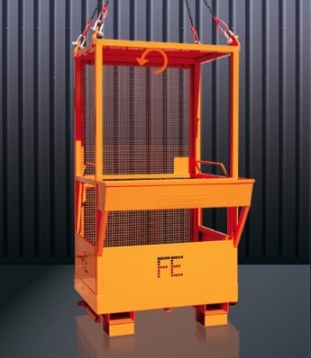 Cette nacelle de travail pour 2 personnes est adaptée pour un transport par chariot élévateur à fourche ou par grue.