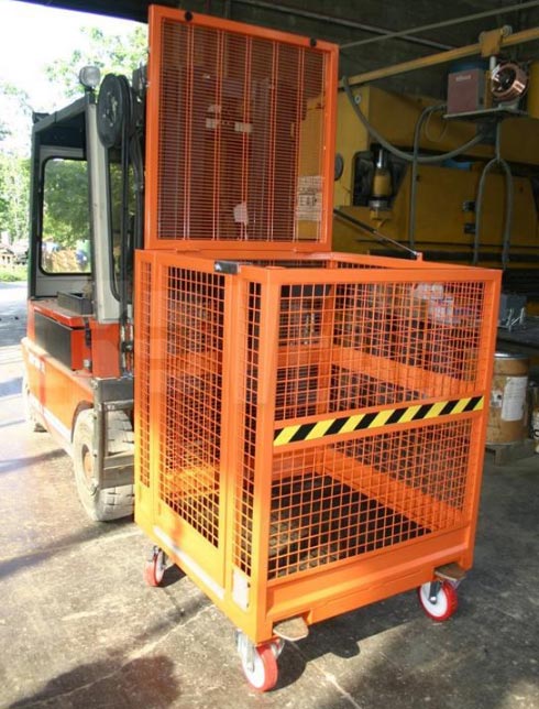 12/03/2022Nacelle multi usage pour intervention en hauteur et en sécurité à fixer sur les fourches d"un chariot télescopique
