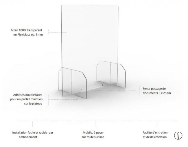 Ecran de protection à poser sur un comptoir ou un bureau.