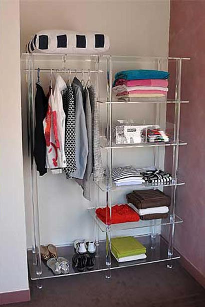 Ce dressing tout en plexiglas sera fabriqué à vos mesures en fonction de l'espace dont vous disposez.
