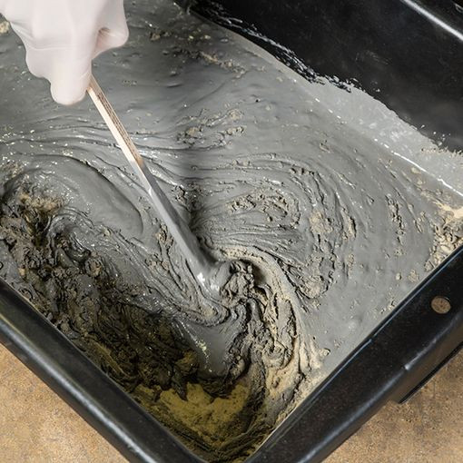 Mortier tricomposant à base de polyuréthane renforcé avec des agrégats.