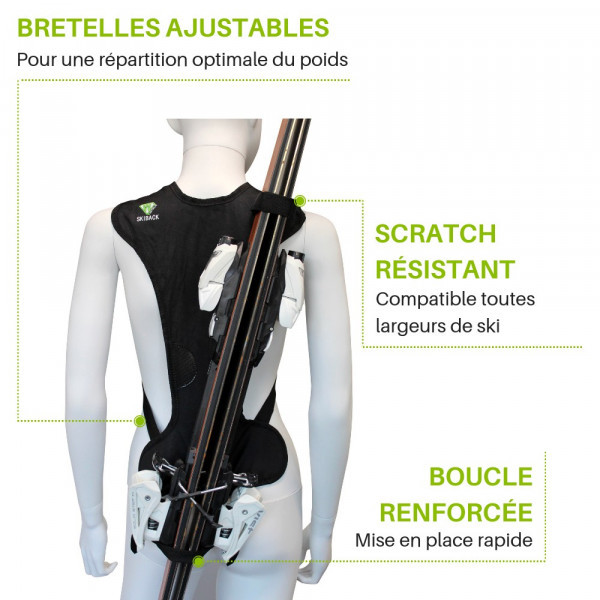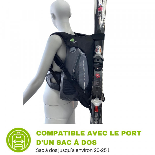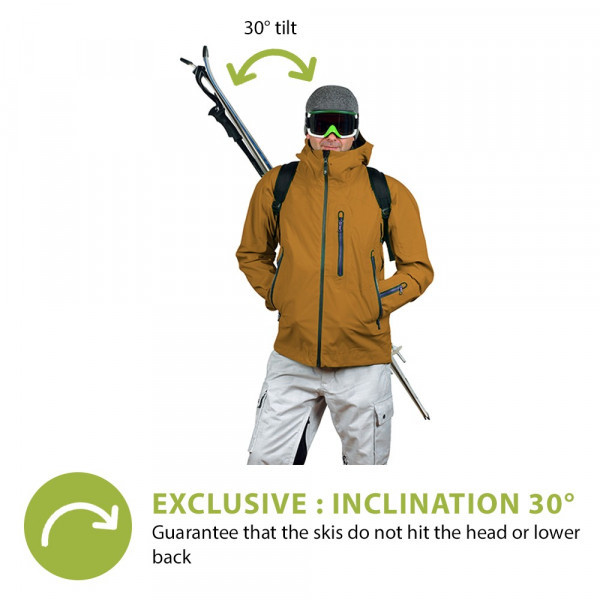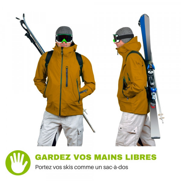 Le porte-skis dorsal, vous permet de porter vos skis avec aisance en gardant vos mains libres.