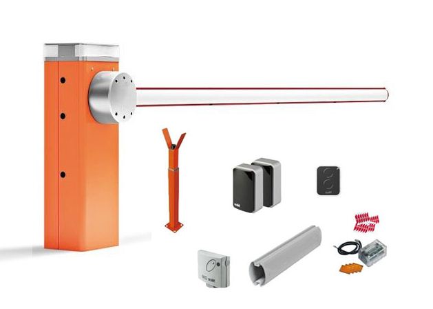 - Barrière pour lisses de 3 m, irréversible 230 Vca, moteur 24 Vcc, fût en acier traité par cataphorèse et laqué orange.