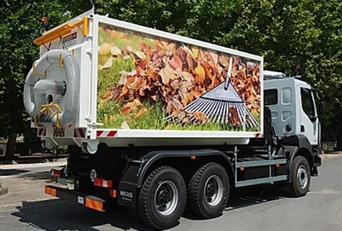 Cet aspirateur broyeur de feuilles sur berce amovible est adapté aux véhicules de 3,5 tonnes ou poids lourds.