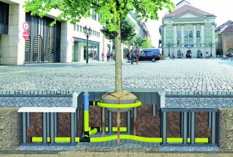 Le module d'enracinement pour arbres est un système de protection racines destiné particulièrement aux plantations dans les milieux urbain.
