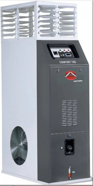 Il est équipé d'un réservoir de carburant intégré, d'un brûleur indépendant, d'un ventilateur centrifuge et d'un conduit de cheminée.