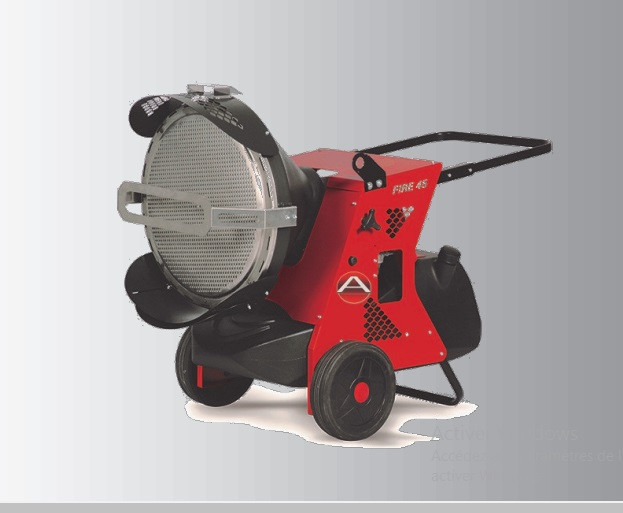Il est équipé d'un réservoir de carburant intégré, d'un brûleur à combustion directe, d'un réflecteur et d'un ventilateur.
