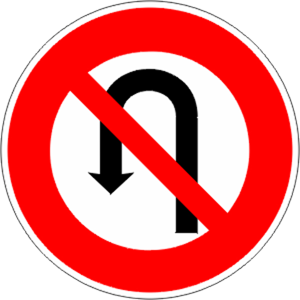 Ce panneau de signalisation routière type B2c indique à l'automobiliste une interdiction d'effectuer un demi-tour à la prochaine intersection.